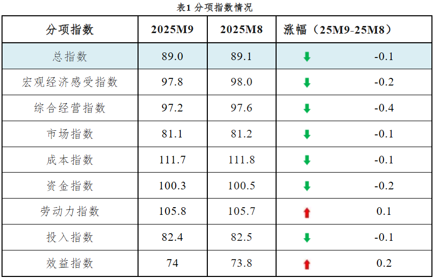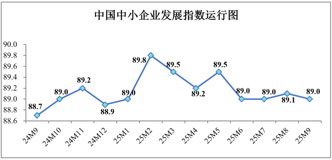 2025年9月中国中小企业发展指数为89.0