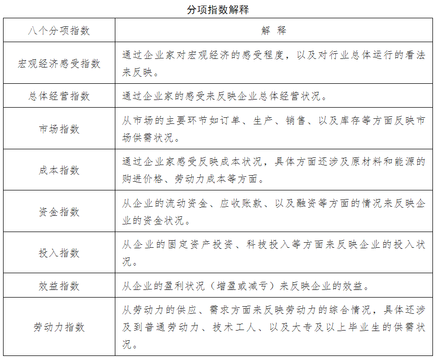 中小企业发展指数通过对国民经济八大行业的3000家中小企业进行调查,利用中小企业对本行业运行和企业生产经营状况的判断和预期数据编制而成,是反映中小企业经济运行状况的综合指数。